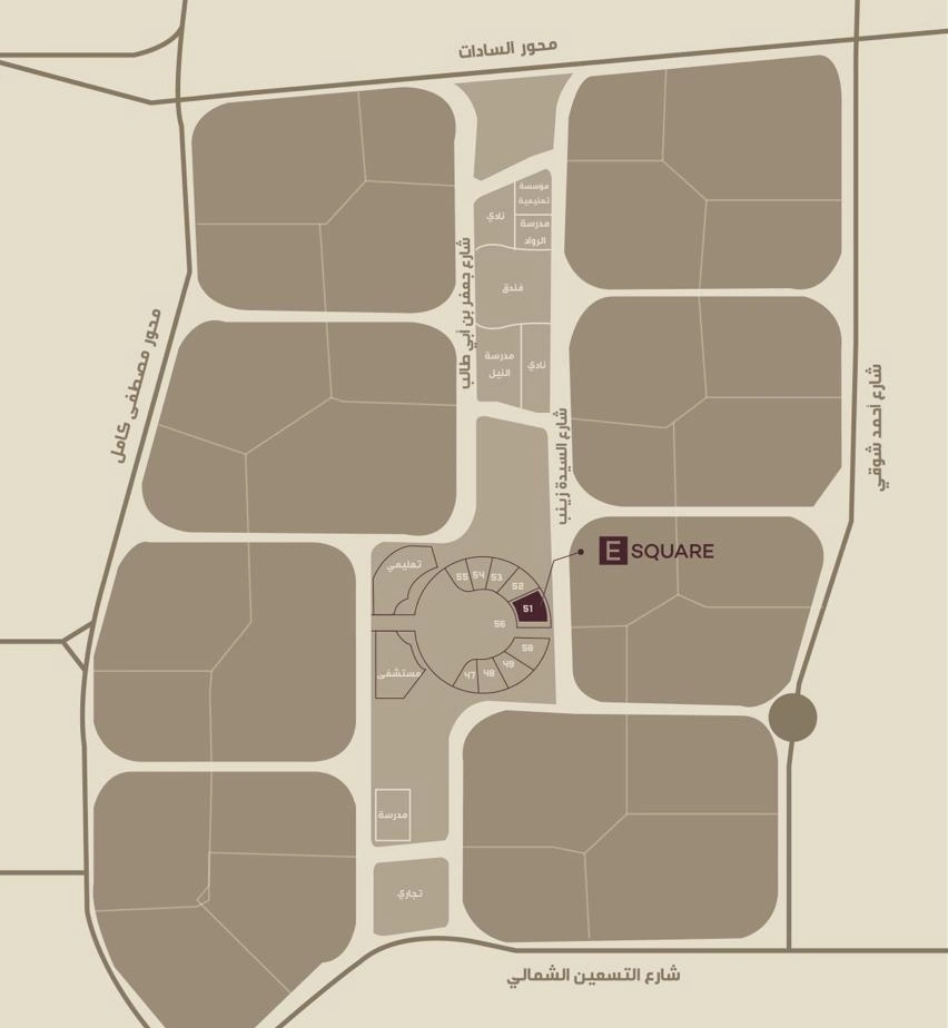 - يقع E Square Mall بالقرب من الرحاب ومدينتي والمستقبل سيتي.