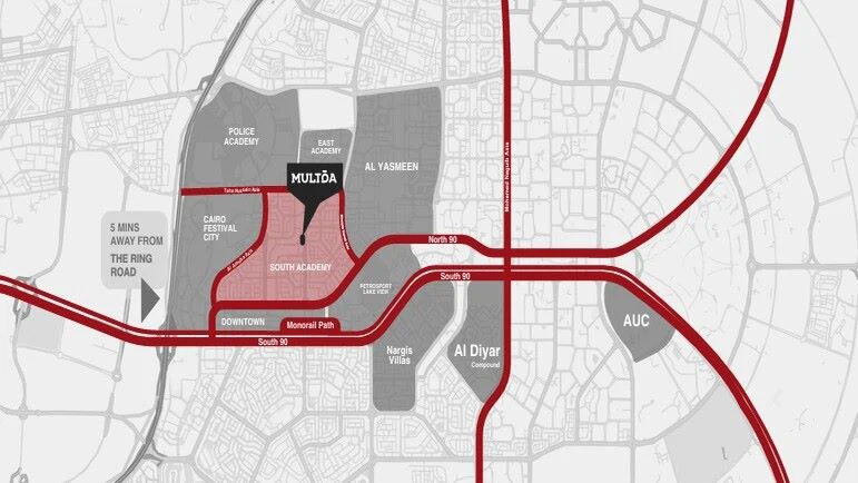 يتمتع مول ملتقى التجمع الخامس بامتياز القرب من أهم نقاط الجذب والمحاور الرئيسية في القاهرة الجديدة، ما يسهل الوصول إليه ويعزز قيمته التجارية ومن أبرز هذه الأماكن: