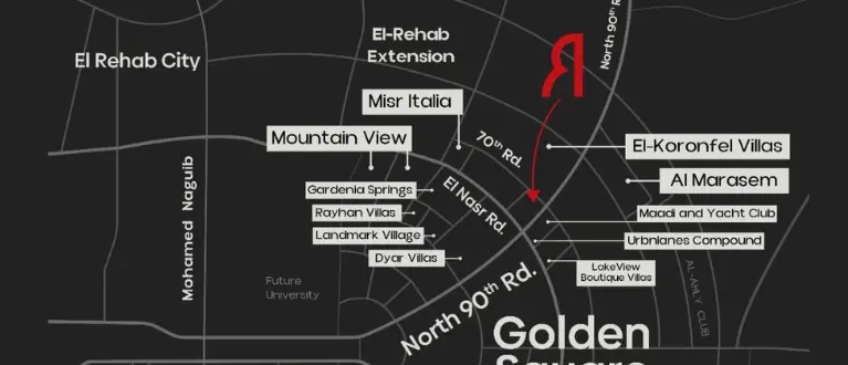 اختارت شركة RMD موقعًا استثنائيًا لمول راق هب التجمع الخامس داخل الجولدن سكوير بالتجمع الخامس، تحديدًا على شارع التسعين الشمالي، أحد أكثر المناطق حيوية في القاهرة الجديدة حيث يتميز الموقع بحركة مرور نشطة على مدار اليوم، مما يجعله وجهة مثالية للاستثمار التجاري والإداري والطبي، كما يسهل الوصول إليه من خلال مجموعة من الطرق والمحاور الرئيسية التي تربط القاهرة الجديدة بالعاصمة الإدارية وباقي المدن مما يضمن تحقيق عوائد بفضل الترافيك المضمون للمول.