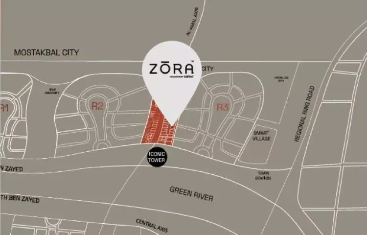 - يقع زورا تاور العاصمة بالقرب من حي R2 وحي R3.